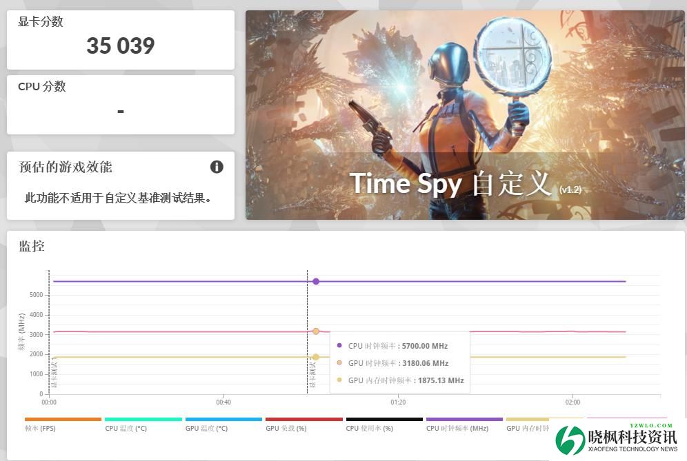 最后我们还尝试使用GPU Tweak对ROG ASTRAL白夜神RTX 5080进行超频,最后将GPU频率超频至3020 MHz。TimeSpy GPU得分提升到35037分,实际运行频率达到3180MHz,相对默认频率的34003分提升了约3%,表现非常优秀。并且从平直的频率曲线可以看出来,这种程度的超频还远没有达到显卡的极限,说明显卡拥有更大的超频潜力。